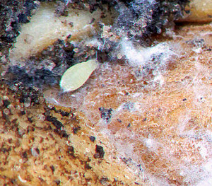 Wortelluizen zien er uit als bleek-witte bladluizen.